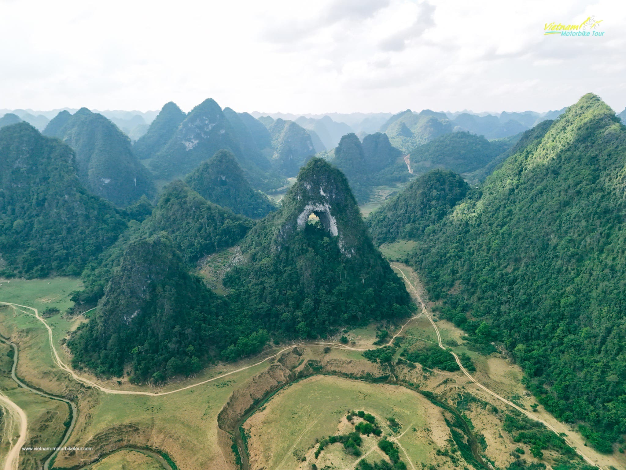 Back on the saddle, we cruise through the Dong Van Karst Plateau, part of a UNESCO-recognized Geopark. The road here is surreal: sharp limestone ridges, wind-whipped valleys, and sheer cliffs draped in clouds. The offroad sections are raw and wild—mud tracks, broken stone paths, and hidden village trails. It’s here your Vietnam dirt bike tour becomes not just an adventure, but a rite of passage.