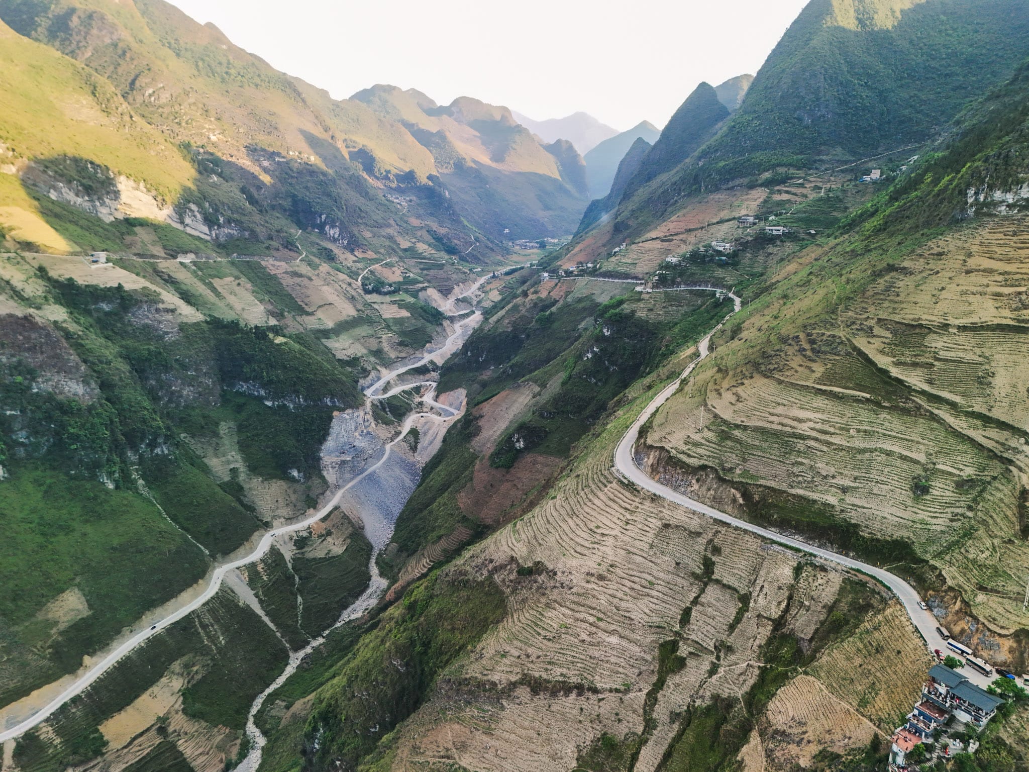 We pause in Meo Vac, a town tucked deep in the Dong Van Karst Plateau Geopark. Depending on the day, we might encounter the colorful H’mong market—a sensory overload of traditional costumes, buffalo trading, and mountain herbs. From Meo Vac, we ascend into the most cinematic portion of the route: Ma Pi Leng Pass.